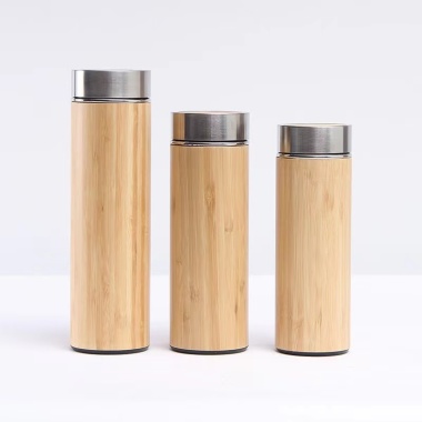 Portable Stainless Steel Water Bottle With Tea Infuser Thermos Vacuum Flasks Bamboo Shell Lid With Handle Novelty Gift 450ml