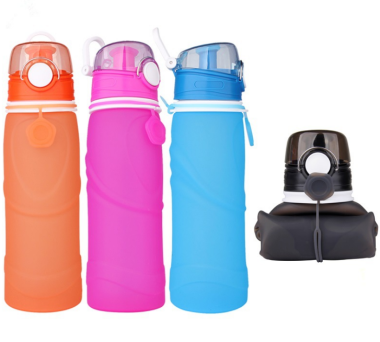 600ml water bottle and can be folded, food grade silicone material. BPA free sport water bottle.