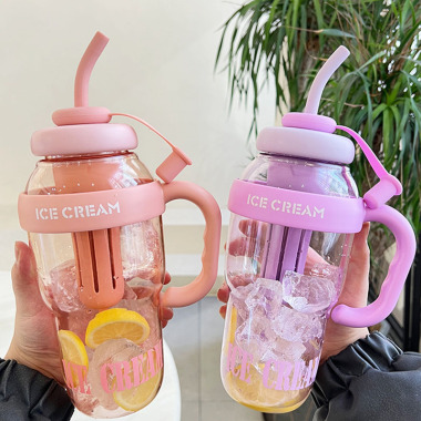 Hot Sell 1200ml Colorful Lagrge Capacity Tumbler With Handle Plastic Coffee Cups Travel Mugs With Straw